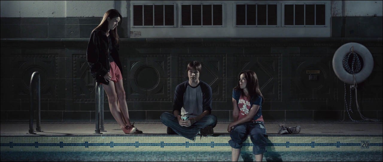 이 접목을 위해 미첼이 선택한 도구는 폐허와 시간적 맥락의 묘사다. 먼저 폐허라는 요소를 살펴보자. 당연하겠지만 미첼은 디트로이트에 실제로 있는 폐허를 물색한 뒤, 배우들을 데려다 놓고 찍었다. 하지만 이 폐허에서 일어나는 사건들은, 시사적이기보다는 에로스와 타나토스 간의 긴장으로 가득 차 있다. 비교적 아트하우스 취향의 코미디 영화에 가까운 첫 영화 [아메리칸 슬립오버]는 그 긴장이 대놓고 드러내진 않았다. 간단히 말해 [아메리칸 슬립오버]는 죽는 사람이 없다. 롭과 마커스가 폐허가 된 건물로 들어가 짝짓기하는 연인들을 바라보며 지나가는 시퀀스가 대표적일 것이다. 이 시퀀스에서 롭과 마커스가 보이는 태도는 에로스에 동참하지 못하고 맴도는 유보하는 태도에 가깝다. 그나마 롭은 줄곧 그려왔던 금발 소녀를 만나지만, 실망한 채로 돌아서야 한다. 이런 어색함은 매기가 키스를 거절하는 장면이라던가, 스콧이 쌍둥이 자매를 두고 망설이는 장면, 클로디아가 자넬과 싸우고 남친에게 찾아가 고백하는 장면에서도 잘 드러난다. [아메리칸 슬립오버]를 만들 당시엔 미첼은 타나토스의 두려움보다는 에로스의 복잡함 앞에서 소심해지는 미성년에 관심이 많았던 것으로 보인다. [아메리칸 슬립오버]의 폐허는 일탈의 공간이지만, 동시에 그 일탈에 쉽게 끼어들지 못하는 10대들의 수줍은 심리를 드러내는 곳이기도 하다. 비전문 배우를 기용하고, 지역 축제를 그대로 담아내는 세미 다큐멘터리 적인 성향과 10대 섹스 코미디와 현실 간의 적은 차이 역시 이런 소심한 감수성과 연관이 있을 것이다. [아메리칸 슬립오버]에 등장하는 사건들은 [팔로우]와 달리, 지극히 일상적인 범주에서 벗어나지 않기 때문이다.