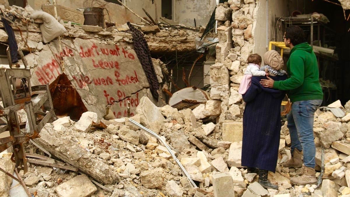 이런 재정립이 드러나는 장면이라면 드론을 이용해 파괴된 알레포를 상공에서 보여주는 장면일 것이다. 이 장면은 지금까지 이어져 온 사적인 기록과 다른 태도로 촬영하고 있기에 인상적이다. 와드는 드론에다 카메라를 매달아 뭘 보여주려고 했을까? 가장 이해하기 쉬운 답은, 전쟁과 폭력의 상흔에 대한 효과적인 제시일 것이다. 저널리즘에서도 부감으로 건물 붕괴을 비롯한 사고 현장을 보여주는 앵글이 흔하다는걸 생각해보면 알 수 있을 것이다. 하지만 다른 방향으로도 생각해볼 수 있다. 와드는 도시에 폭격기 시점에서 자신을 비롯해 알레포 시민들이 어떻게 보일지 상상하고 있다. 여기서 짚고 넘어가야 한다면, 폭격기 시점에서는 피해자가 보이지 않거나 그걸 무시하려고 한다는 점이다. 에놀라 게이 조종사는 히로시마에 폭탄을 떨구면서 『이 세상 한 구석에』나 『검은 비』가 보여준 현실을 상상하지 않는다. (혹은 않았다). 하지만 비슷하게 상공으로 올라간 와드의 드론 카메라는 아래에 무엇이 있는지, 누가 촬영하는지 인지하고 있다. 이렇게 보면 이 드론 카메라의 시점은, 알 아시드 정권과 러시아를 겨냥하고 있는 셈이다. 와드는 여기다 알레포라는 도시의 역사가 어떻게 파괴되었는지 알리고 싶어한다. 알레포는 세계에서 가장 오래된 도시로, 세계문화유산으로 지정된 도시다. 오래된 도시를 방문한 사람이라면 알겠지만, 오래된 도시는 대체로 과거의 흔적이 현재에도 복잡하게 남아있기 마련이다. 정성일 평론가는 이에 대해 "오래된 도시는 미로처럼 되어있다. 감독은 알레포를 보여주기 위해 그런 시점을 취했다."고 밝힌 바 있다. 와드는 그 역사를 사랑하면서, 애통해한다.