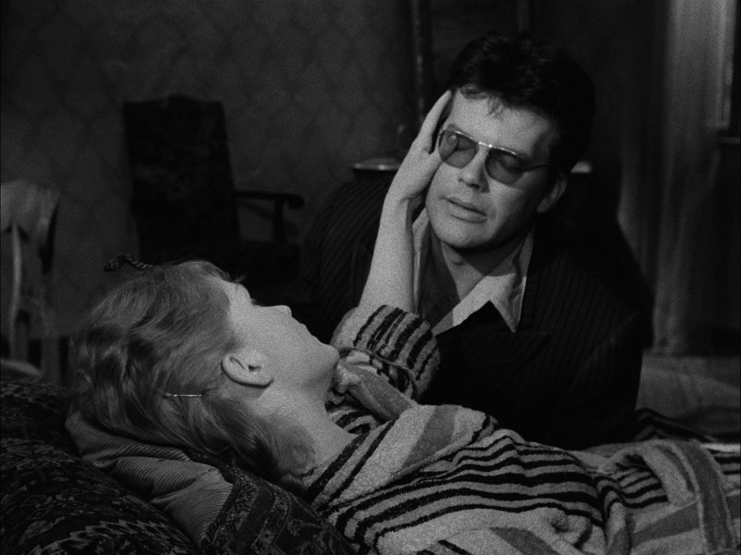 이렇게 펠리시아가 익명성을 유지하는 동안, 하스는 펠리시아가 출연하는 라디오 쇼와 쇼에 대해 얘기를 나누는 바 종업원들의 모습을 포착한다. 이런 과정을 통해 관객들은 펠리시아가 유명한 라디오 성우라는 걸 알게 된다. (심지어 펠리시아라는 이름이 실제 본명인지 아니면 배역 이름을 따서 부르는 건지 모호하게 다뤄진다.) 하지만 동시에 영화 밖 디제시스에서 흘러나오는 펠리시아 자신의 나레이션은, 성공한 라디오 성우 이상의 무언가가 있다는 걸 드러낸다. 그렇게 펠리시아 자신의 나레이션이 한 차례 정리 될 무렵 펠리시아는 관객 쪽으로 얼굴을 돌려 자신을 드러낸다. 마침내 자신을 드러낸 펠리시아는 무엇을 보는가? 하스는 펠리시아의 시점에 대한 반응 숏으로 방 전경과 비명 소리는 제시한다. 도입부 시점에서는 이 방이 정확히 어떤 의미인지는 알 수 없다. 영화 내에서도 이 방이 무엇을 의미하는지는 끝날 쯤에 나온다.
